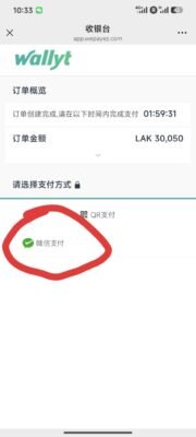 还有手机下单时候发现没有支付选项,这里是因为微信支付不支持手机浏览器唤醒,所以需要把这个付款页面链接复制到微信打开就可以出现付款选项了,就是下面这个浏览器可以看到的页面。结算货币是老挝币。