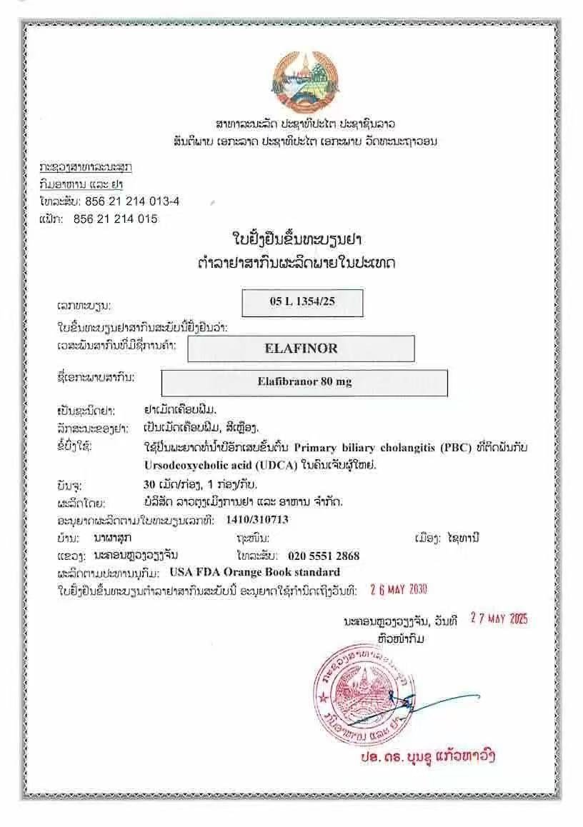 ➤ 与熊去氧胆酸(UDCA)联用,适用于对UDCA应答不足的成人患者;
