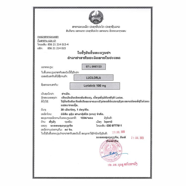 中文名称:劳拉替尼