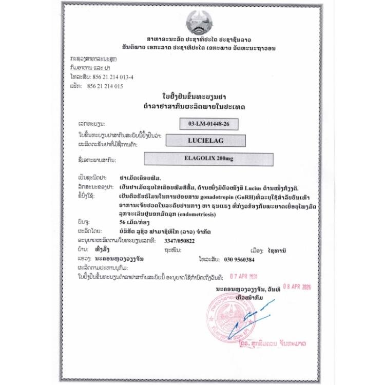 LuciElag 是一种促性腺激素释放激素 (GnRH) 受体拮抗剂,用于治疗与子宫内膜异位症相关的中度至重度疼痛。