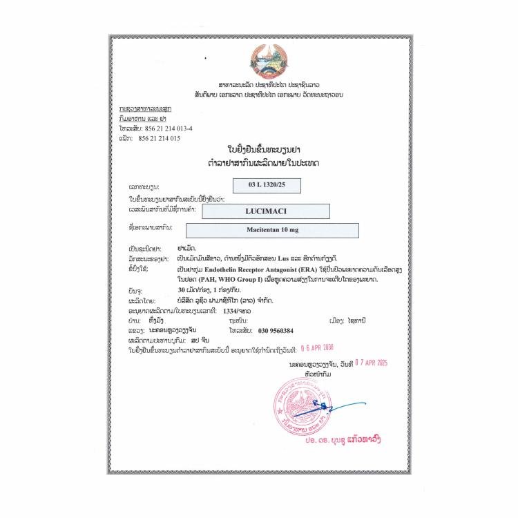 LuciMaci是一种内皮素受体拮抗剂 (ERA),用于治疗肺动脉高压 (PAH,WHO I 类),以降低病情进展和 PAH 住院风险。