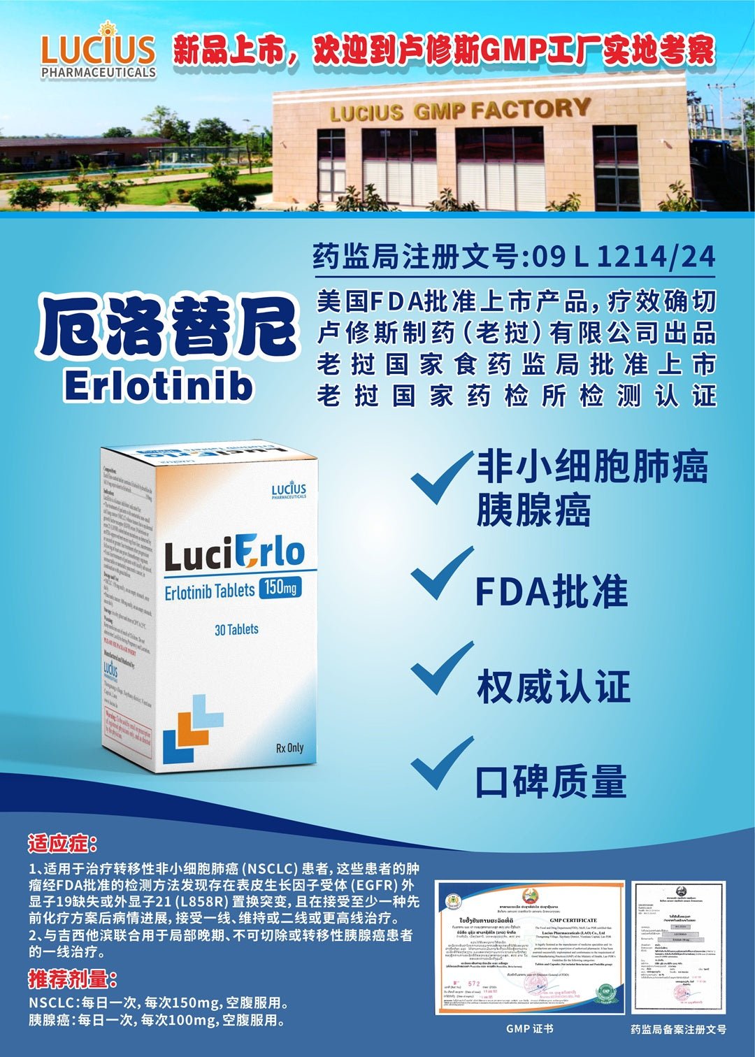 汇总分析显示,在所有获批治疗线的NSCLC患者(无论有无EGFR突变)和胰腺癌患者中,LuciErlo最常见的不良反应(≥20%)是皮疹、腹泻、厌食、疲劳、呼吸困难、咳嗽、恶心和呕吐。
