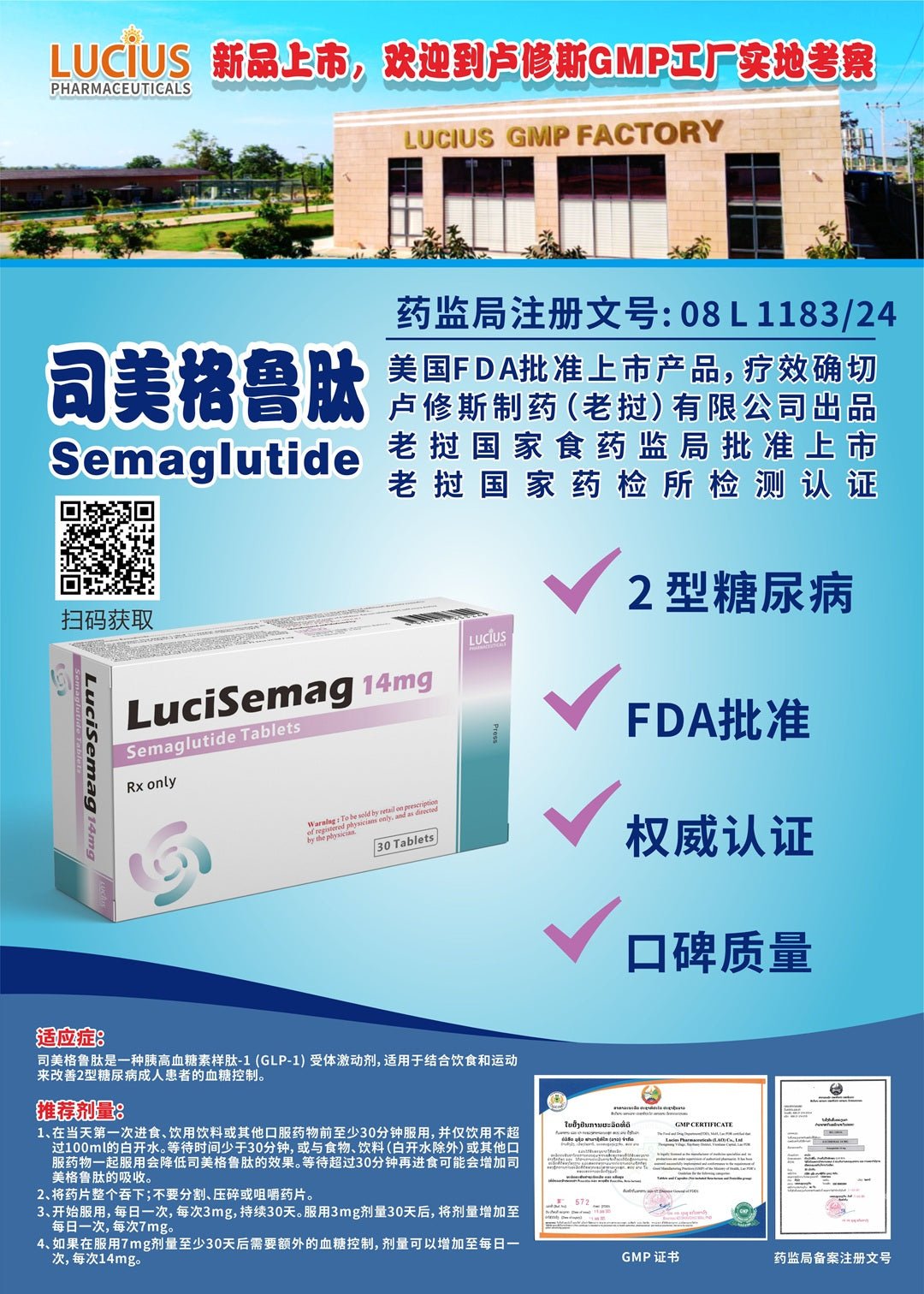 LuciSemag 是一种胰高血糖素样肽-1 (GLP-1) 受体激动剂,可作为饮食和运动的辅助手段,改善 2 型糖尿病成人患者的血糖控制。