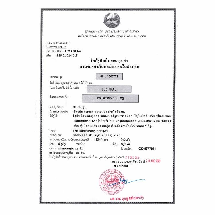 卢修斯制药 Lucius LuciPral 普拉替尼 Pralsetinib 100mg