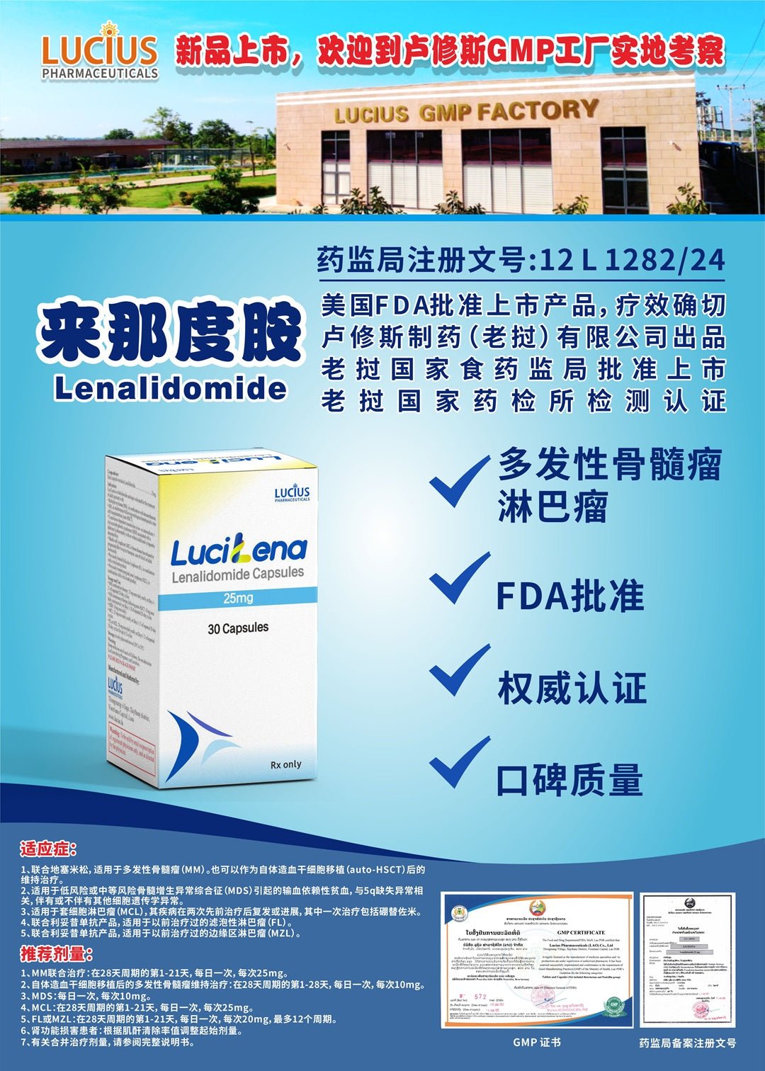 LuciLena 是一种沙利度胺类似物,适用于治疗患有以下疾病的成人患者: