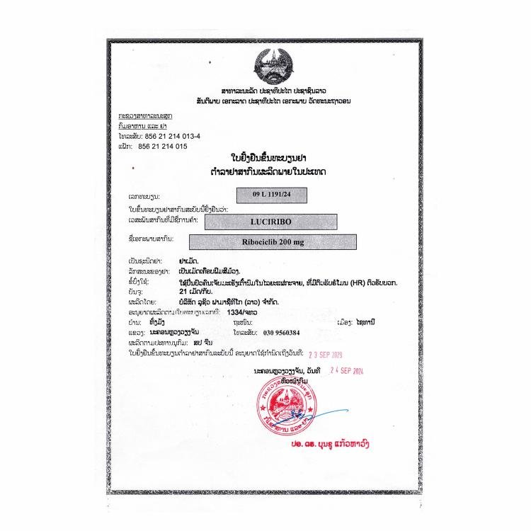 LuciRibo 片剂可与芳香化酶抑制剂或氟维司群一起口服,可与食物同时服用,也可单独服用。