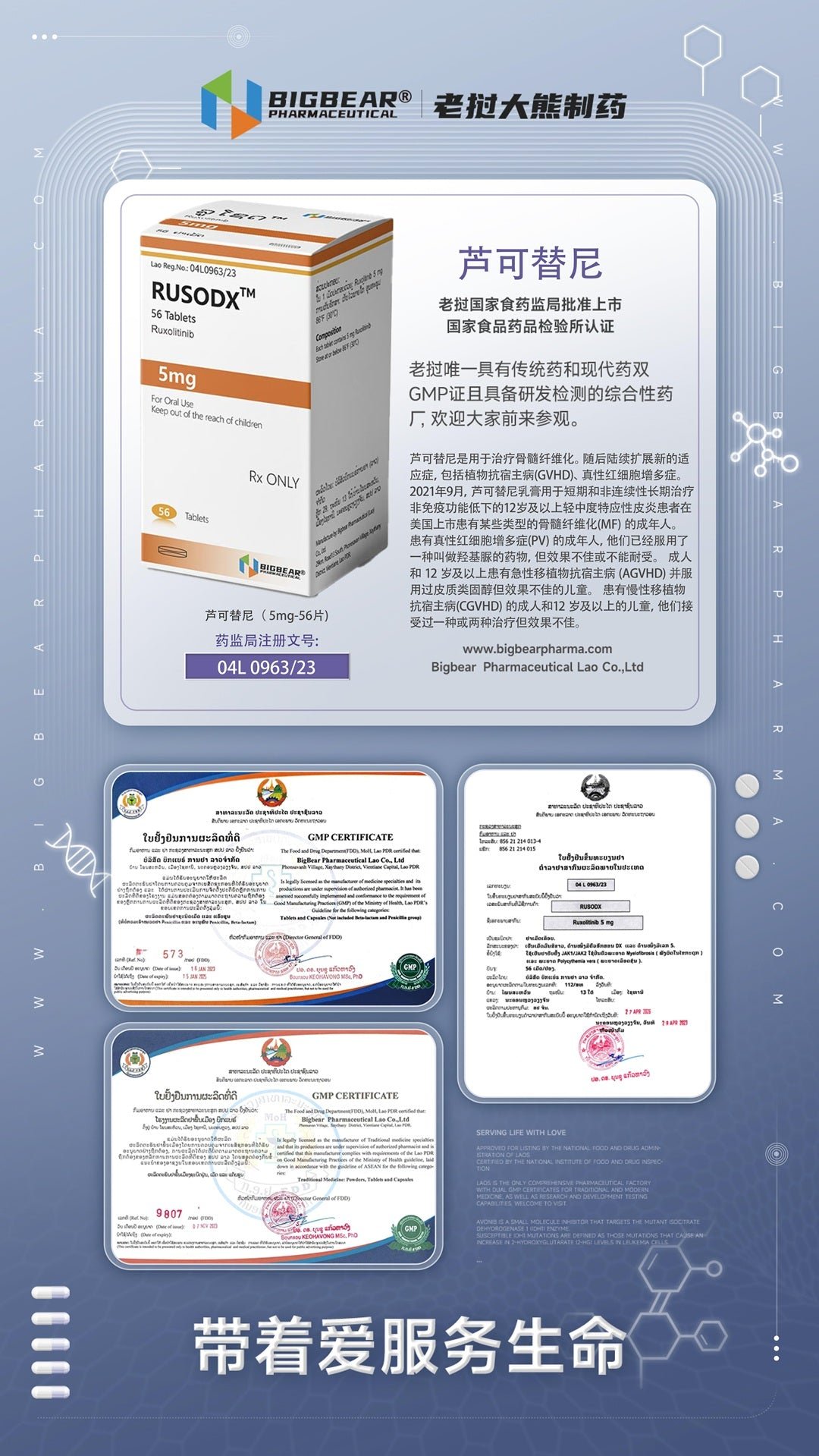 简介:2011年11月,芦可替尼片剂首次在美国获批上市,用于治疗骨髓纤维化。随后不断扩展新的适应症,包括抗植物移植病(GVHD)、真性红细胞增多症。2021今年9月,芦可替尼乳膏用于短期和非连续性长期治疗非免疫功能低下的12岁及以上轻中度特应性皮炎患者在美国上市。