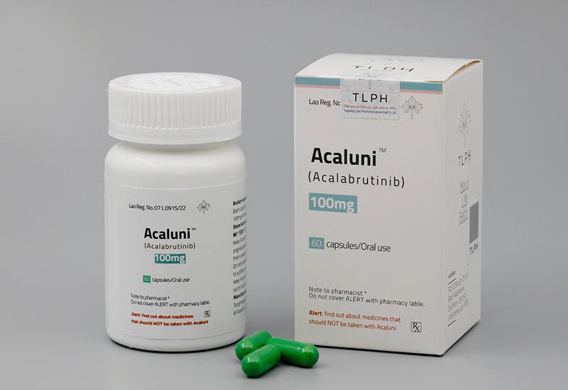 阿卡替尼,商品名为Acaluni,胶囊剂,规格为100mg/粒,60粒/瓶。
